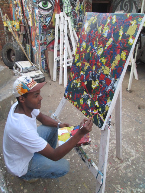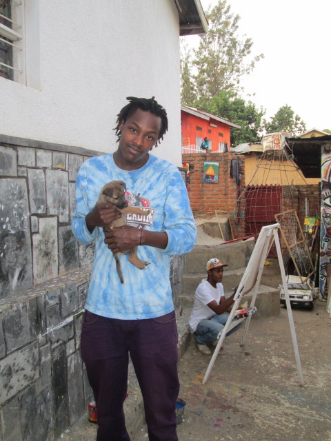 Yesterday I stepped outside while the artists were painting to be in the energy of the creating Art and something happened – I felt that I had been hiding from the inspiration that was the reason I came here. Every morning while I sleep there are artists right outside my window living the life that I aspire to. So I sat and watched, I talked and looked at what was happening. Like every other idea or seed that is planted it needs water before it can begin to grow. I am here in the seed, my investment in the space is the water and the next step is to act. There are of course obstacles to things like paint supplies and canvas but nothing so big that it needs to put me in a stand still. Practicing patience is something I have become very skilled at but Africa and this new found energy for creating my own life provide me with quite a challenge. It has taken me until yesterday to get paint ordered, all the way from Uganda, and now there is no canvas to be found in the city so again I wait while my passion for painting sits, swirling in my gut. My project includes poetry as well so I have started by letting some of the poetic juices flow but the images that need to come out of me flash in my minds eyes repeatedly throughout the day and sometimes I have the feeling like I have forgotten something all day but it is just the unexpressed visions in my mind calling my attention.