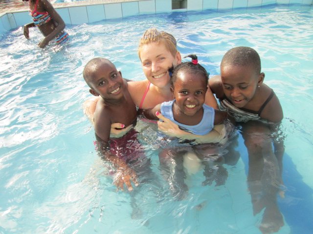 Last Saturday I went for a visit to Alice and Justin’s. I go every Saturday after my Thriller Practice session in Kicukiro. I took Abbey and her cousin’s Nancy, Tetea to the swimming pool (Koga au Piscine, as Abbey says!) with the help of Oliva, the housekeeper and my friend. We swam for a bit, all 3 not good swimmers at all so I had my hands full and we only lasted about 30 mins before it was time for a treat on the deck. I ordered us some Fanta and Ifiliti (fries) and they ate it up like little vaccums. Each one with a big glob of Mayo on the side of their mouth! Even Oliva accepted my offer this time which is uncommon!