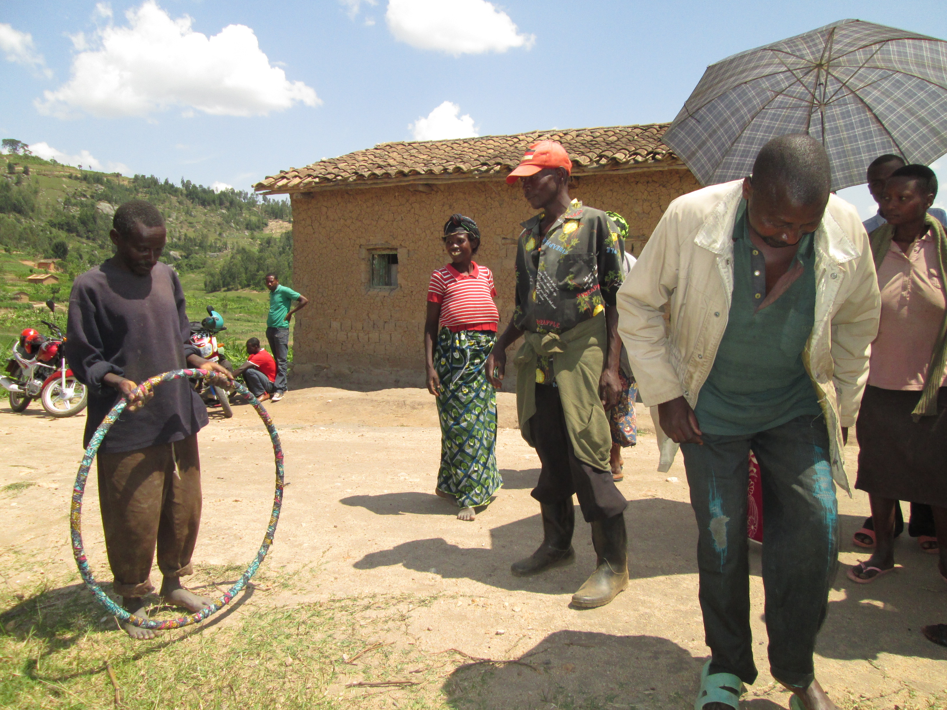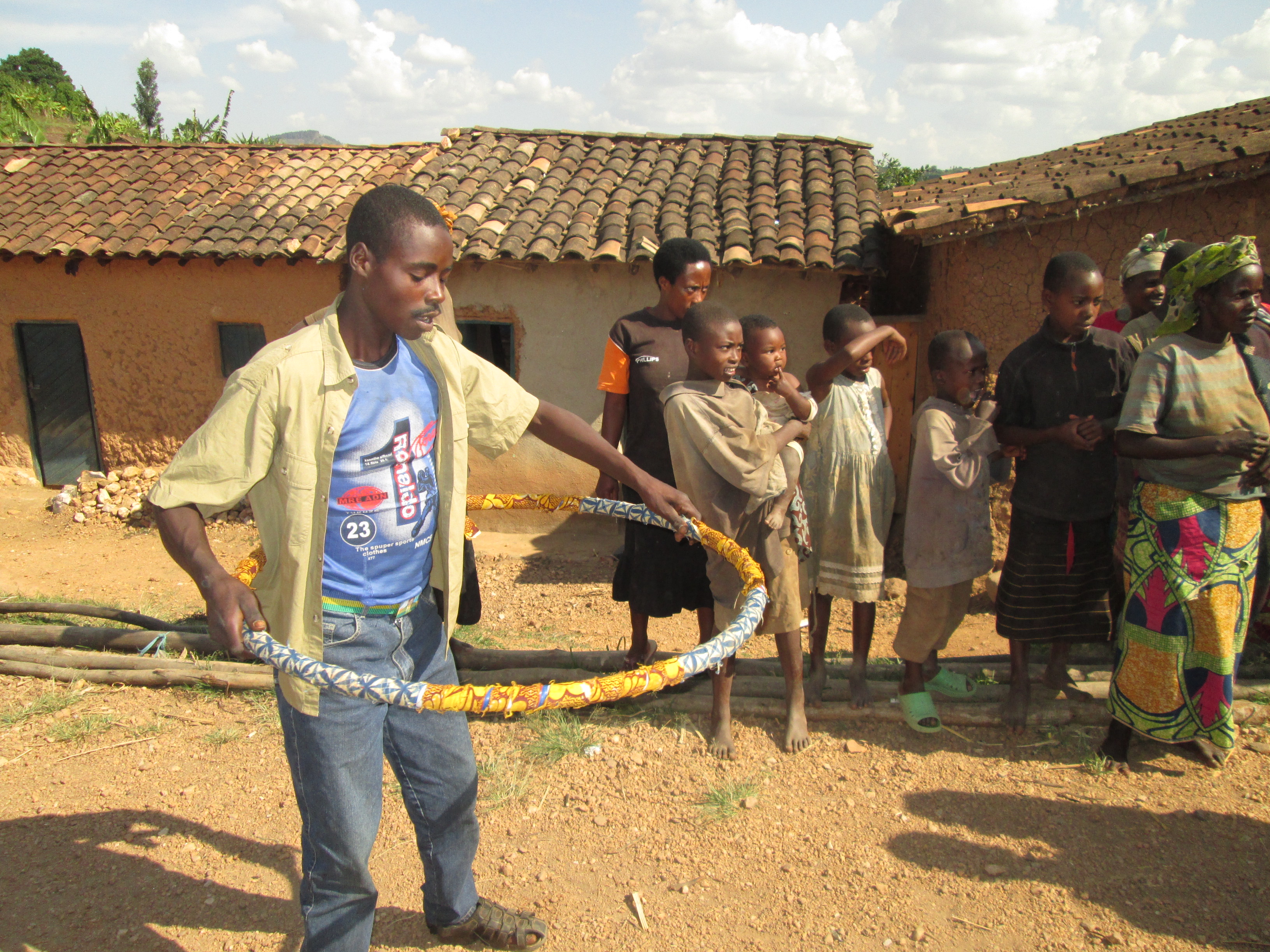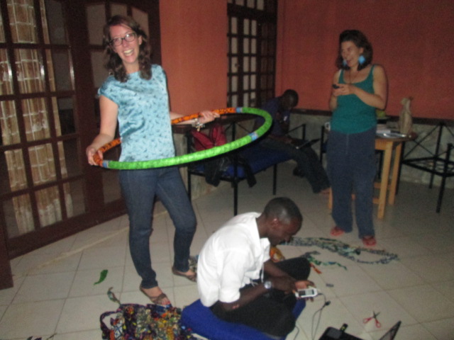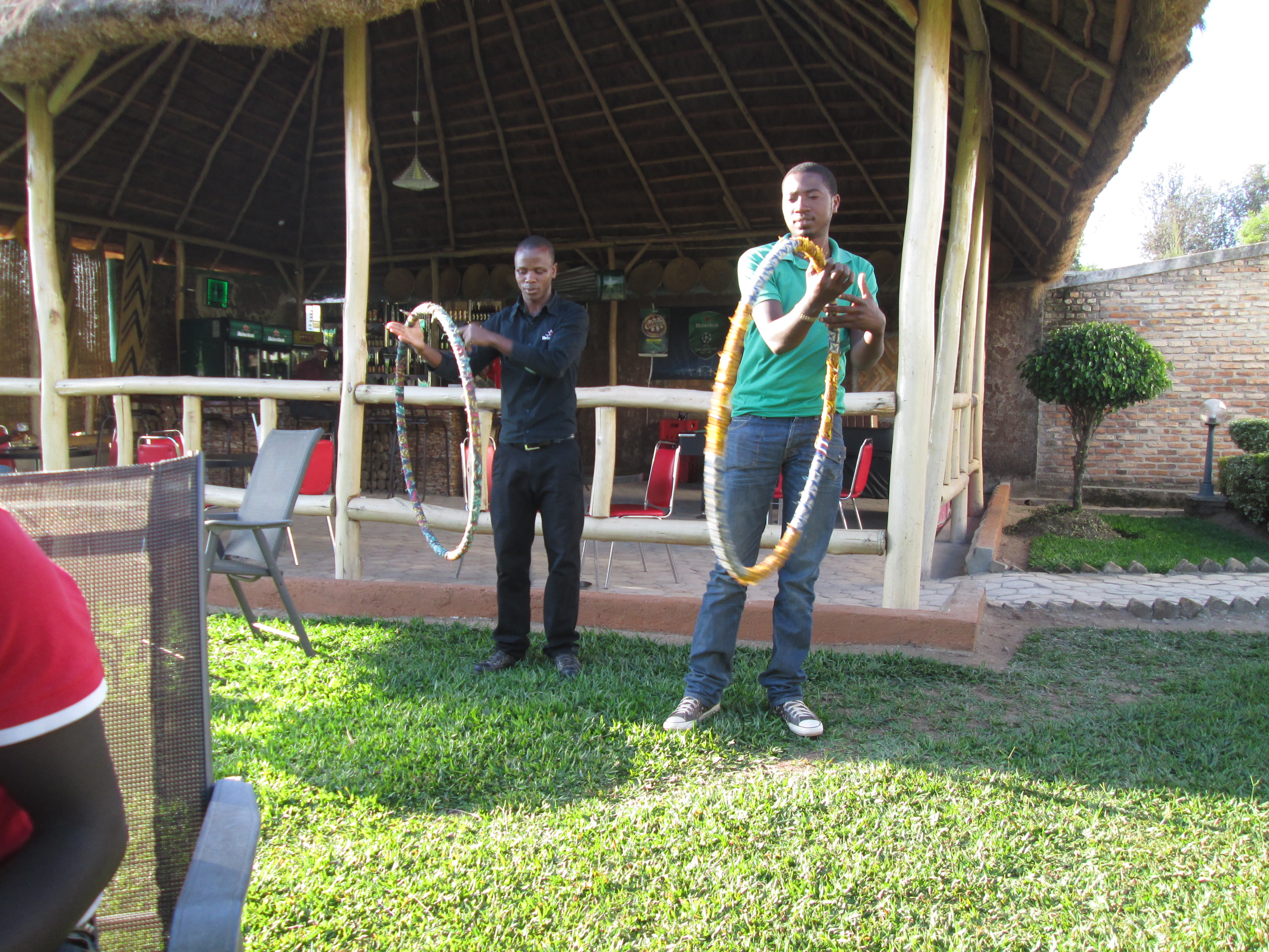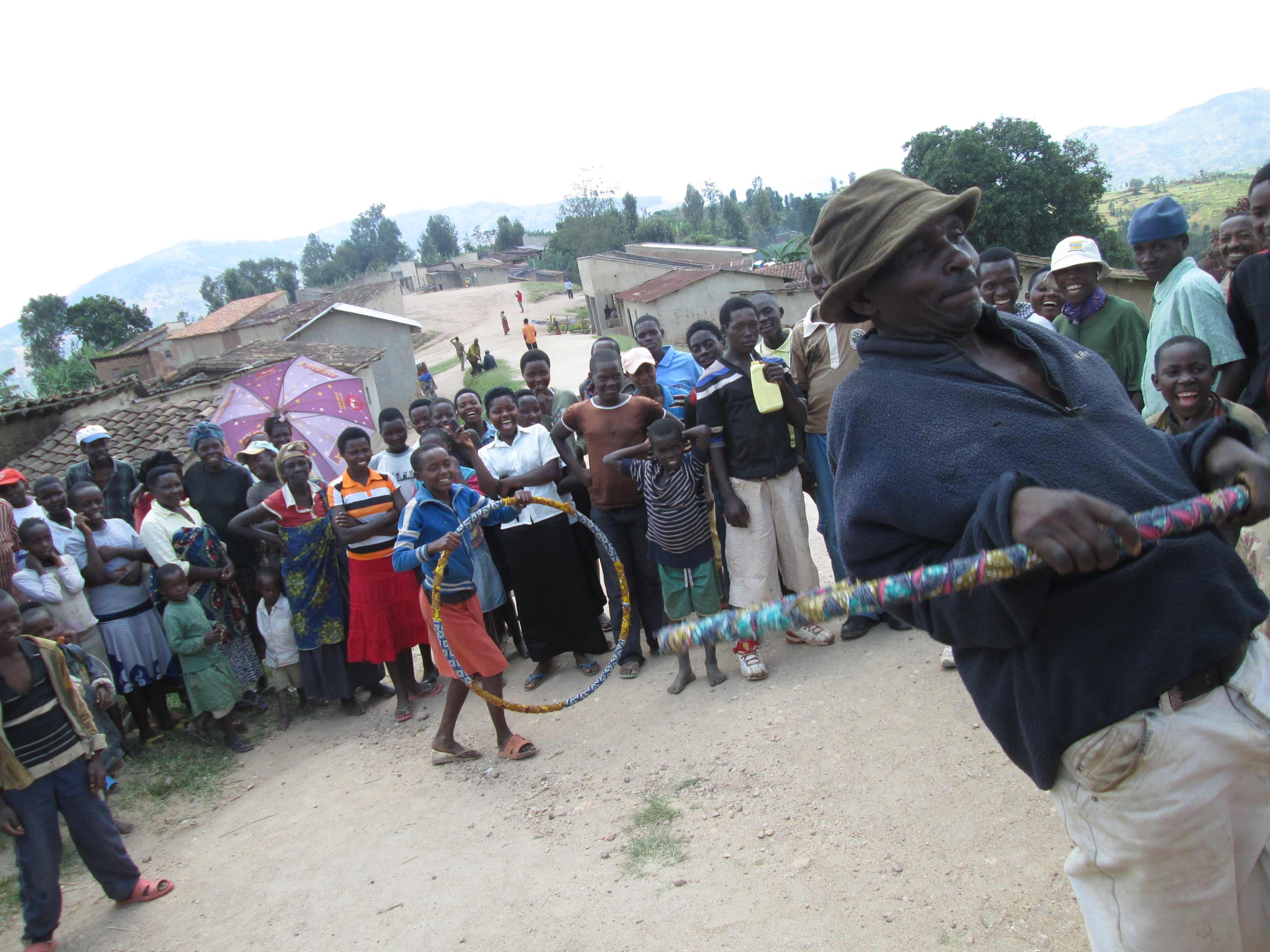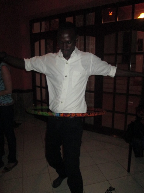 This young man lives in a room with a pile of dirt the size of a VW Beetle, one light bulb hanging from the roof and a thin mattress he shares with Jean Pierre. Yet every night he would bathe just outside my bedroom window and sing as loud as he can with Joy! What an inspiration! As my gift to him when I left Rwanda he received one of the hoops and I instructed him to keep practicing and sharing with others! He was very happy and so was I!