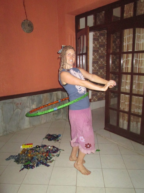 Justin was very excited and supportive of my idea which made it all the more solid in my mind that I was here to do this project as part of my journey. He enjoyed trying out the Hoola Hoop for the very first time and said he had never seen anything like it before! He giggled the entire time! He thought it was a WONDERFUL! He received a Hoop as a going away gift for him and his family to continue to enjoy and share with others!