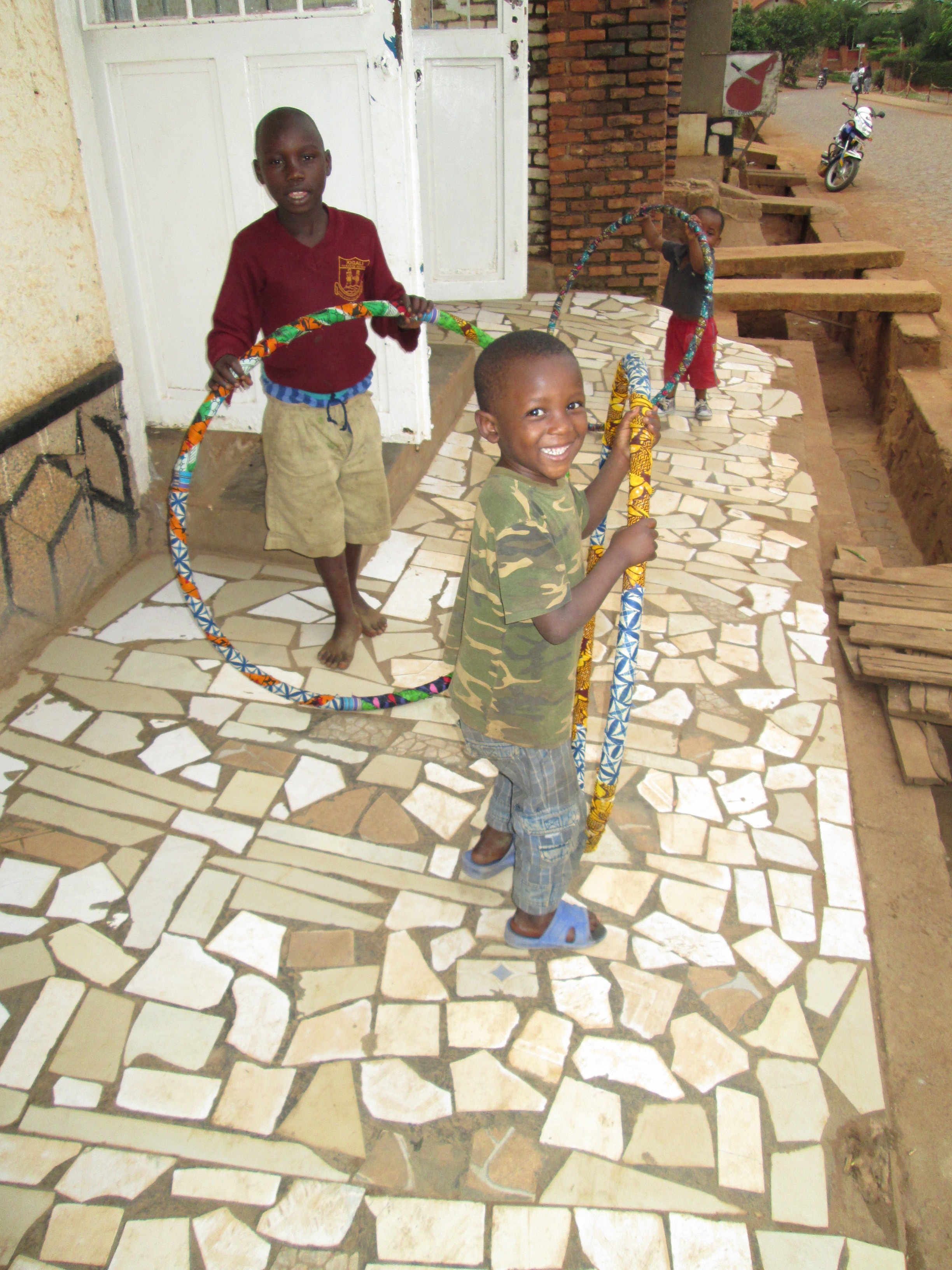 The production began in my makeshift studio, which was the patio at my home in Remera sector of Kigali City. I had lots of enthusiastic helpers and the “Hoop” part of the project was now underway! The “Love” soon to follow – naturally!