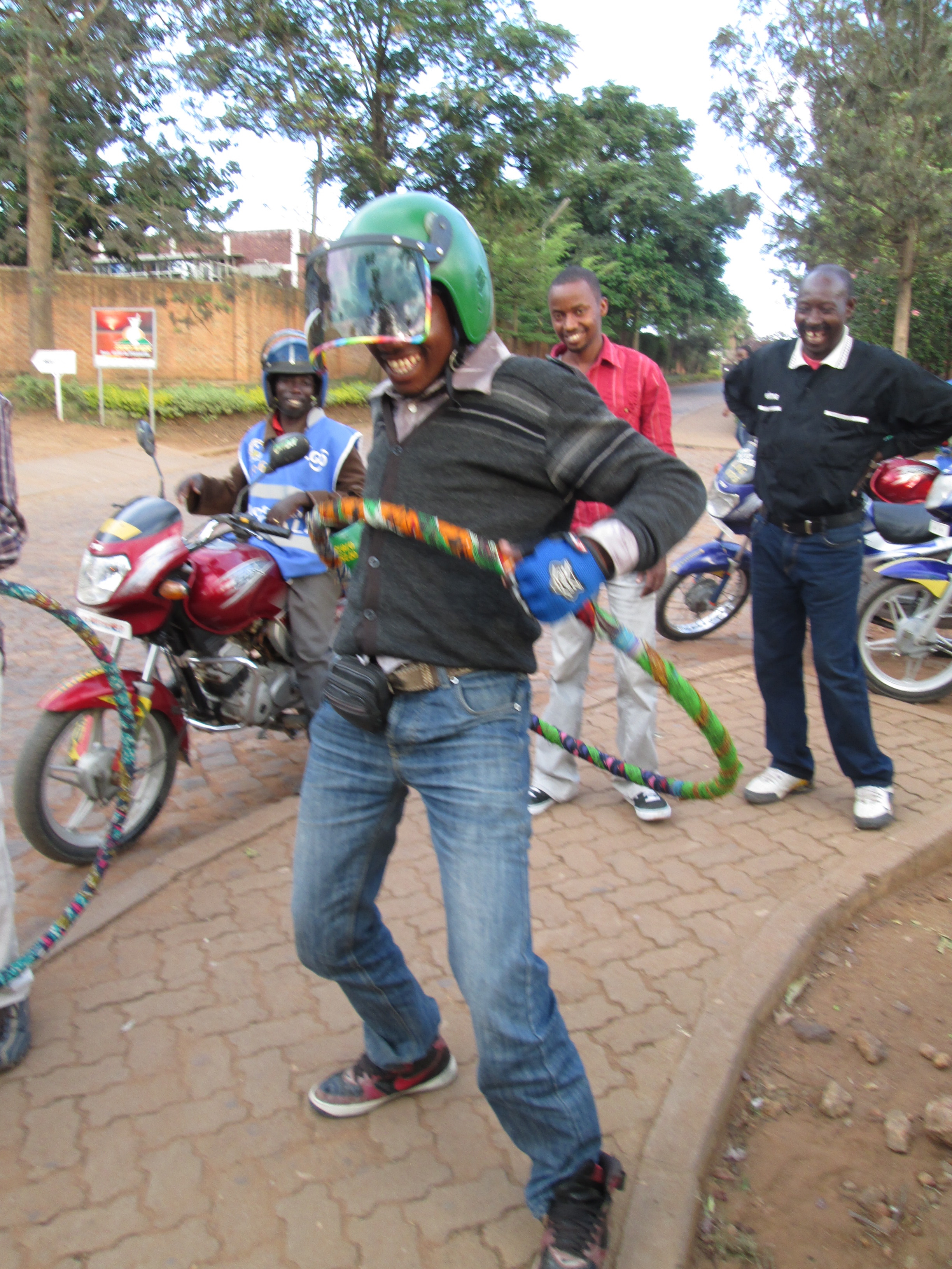 Project “Love Hoop Rwanda” came to my mind as I rode in a car with my inshuti (friend) Justin through the city of Kigali. I saw rolls of black PVC tubing that I used to make my own hoops when I lived in Canada. I started a small company called “Hippy Hoops” when I was in my late 20’s after I discovered a great love and talent for Hooping as well as a passion for creating awesome hoops!