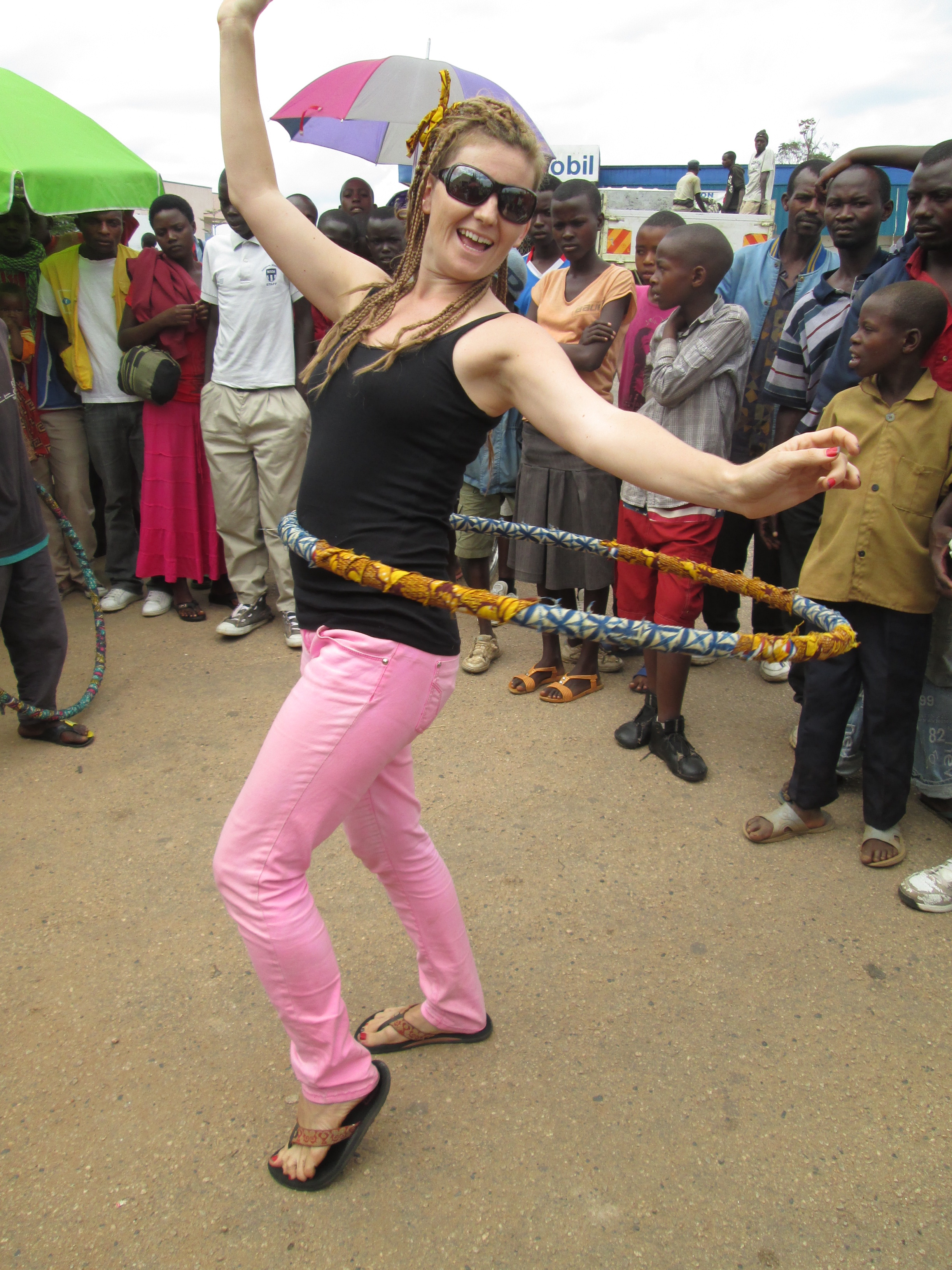 Of course hunger and poverty is a reality here in Rwanda, if not all of Africa and that is something I am well aware of but I have had to learn that giving money is not the way that I choose help people and actually disagree with it on many levels. I believe that empowering people and helping them believe that they can help themselves is the best way to create change. How does a girl with a hoop do that? I simply trust that what I have to offer does in deed offer something vital to human existence, maybe not food in the moment but something that we all need – Joy, Connection and Love.