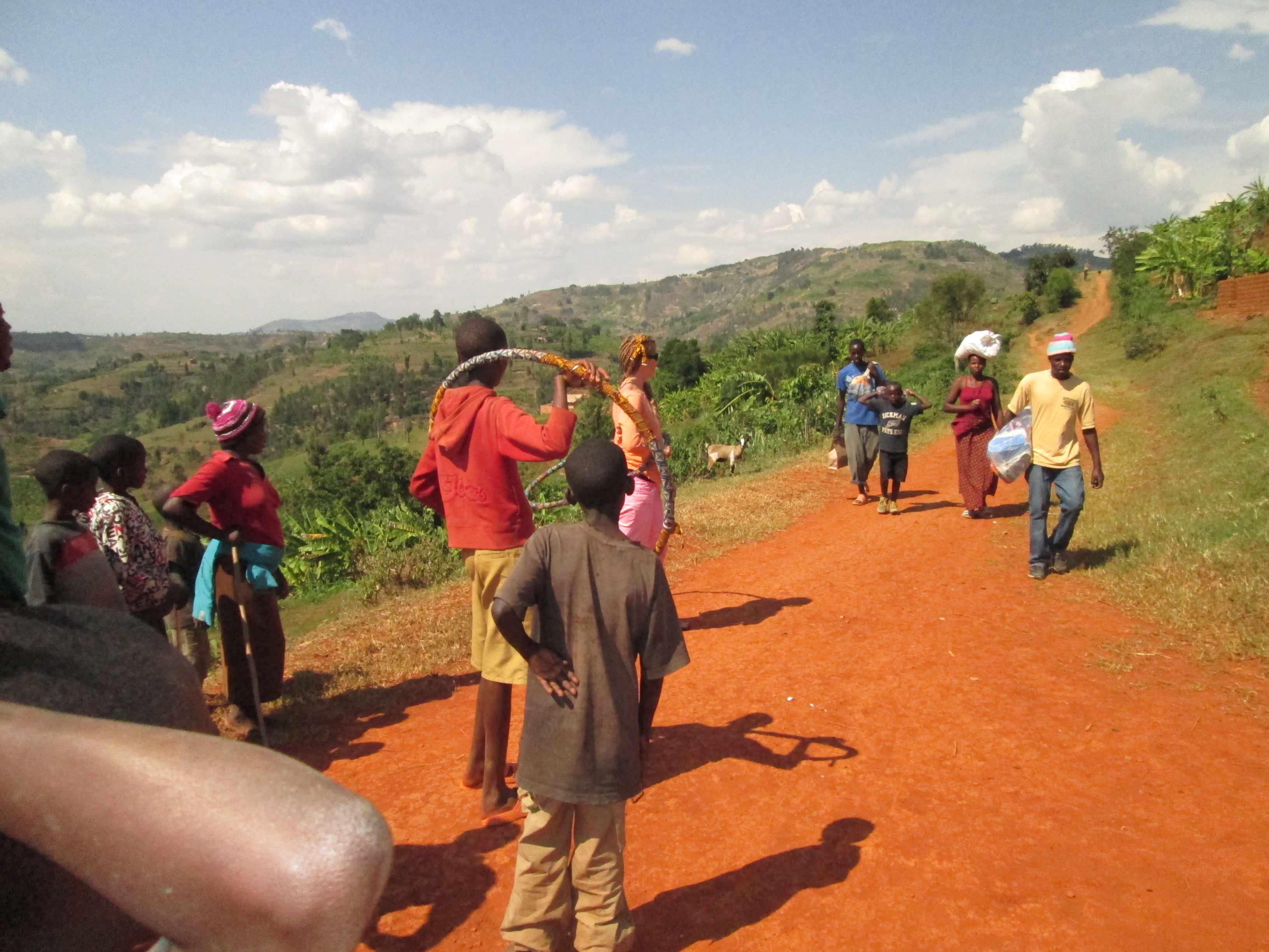 A friend asked me if I wanted to join him in Nyanza while he worked and I saw this as a great opportunity to take the project to more places and people as well as Villagers in some more remote areas of Rwanda. This was an unfamiliar place to me and people were very curious about me, within seconds of walking around by myself with hoops on my shoulder I had an audience.